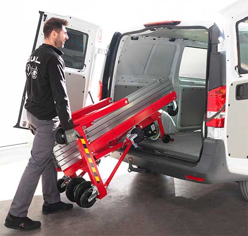 Su diseño compacto, con una altura plegada de tan sólo 1,68 m permite su transporte en pequeños vehículos.