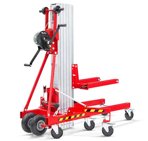 – Para una rápida, cómoda y segura elevación de la carga, el elevador está provisto de un cabrestante autofrenable, que evita el retroceso y paraliza la carga a la altura deseada.